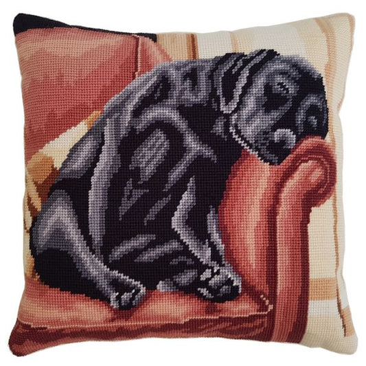 CROSS STITCH TAPESTRY Kits; a range of chunky cushion front kits using ACRYLIC yarns, for those looking for a 'quick-stitch' project, that's easy and fun to stitch. Printed tapestry kits on large hole canvas, perfect introductory kits without wool content that both beginners and advanced stitchers will enjoy.