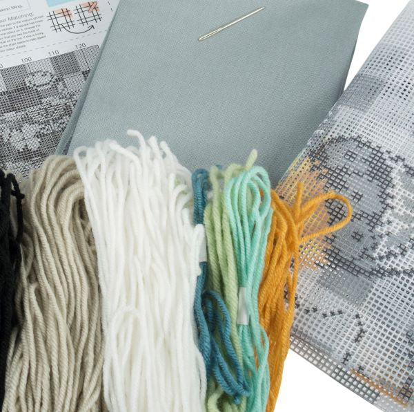 Kit includes 7hpi colour printed canvas, chunky ACRYLIC yarn, needle, cotton cushion back, and full instructions. Kit front with full colour image for easy reference. Quality Assured - Guaranteed Genuine Art Licensed Kit