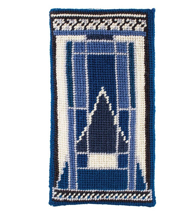 Bloomsbury Glasses Case Tapestry Needlepoint Kit is a smart phone/glasses case Art Deco tapestry kit, on full colour printed 12 holes per inch canvas with finest quality pure wool Appleton wools.