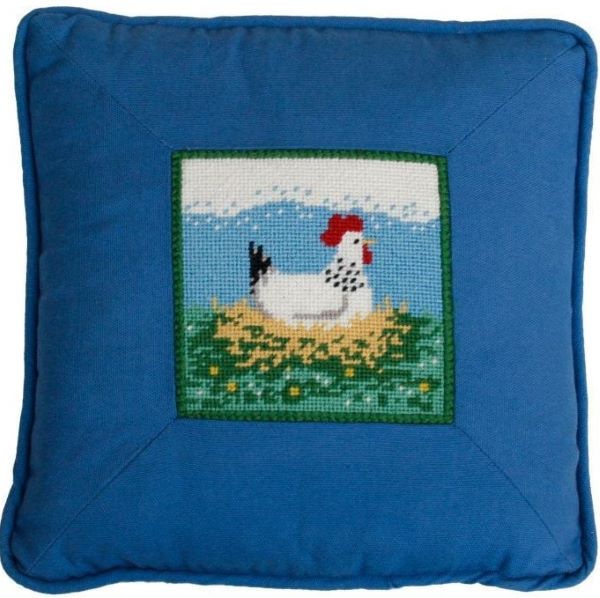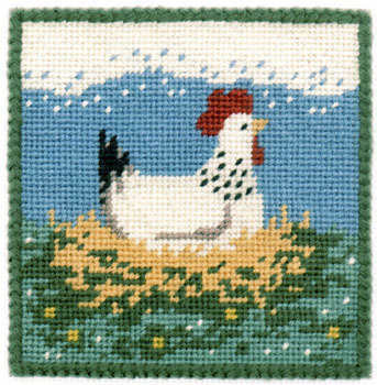 Broody Hen Tapestry Needlepoint Kit is a lovely country farm bird tapestry kit, with a happy hen sitting on her eggs. Perfect for finishing as a pincushion.