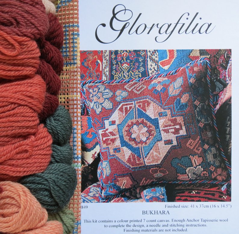 A unique Glorafilia Tapestry Kit stitched in pure new Anchor Tapestry Wools, on 7 hole canvas in simple tent stitch using two strands of wool for excellent coverage.