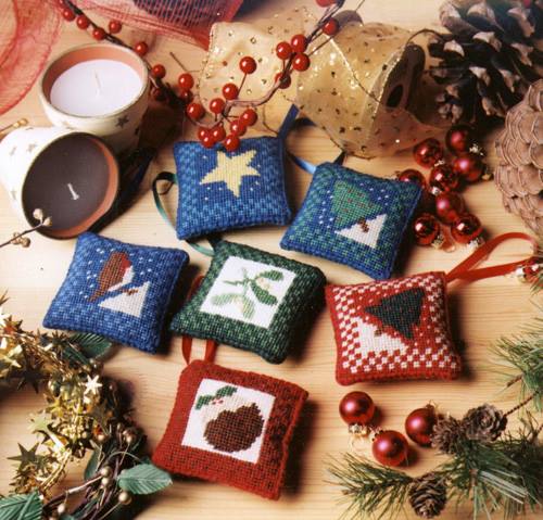 Christmas Decorations Tapestry Needlepoint Kit is a gorgeous set of 6 Christmas tapestry kits, that are perfect for finishing as individual hanging decorations or pincushions.