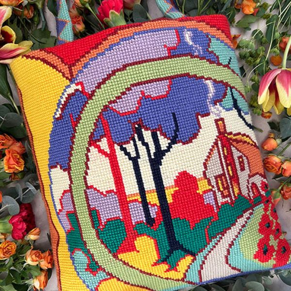 Clarice Cliff Tote Bag Tapestry Kit, Needlepoint Kit - Glorafilia