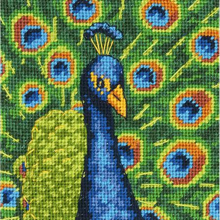 Dimensions Colourful Peacock Needlepoint Tapestry Kit is a beautifully detailed peacock bird tapestry kit design, with tail feathers on full display, in outstanding detail.