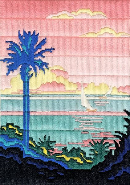 English Riviera long stitch kit is perfect for finishing as a picture. One of a pair of British landscape kits, stitched in long vertical stitches, in Anchor Tapestry Wool colour tones.