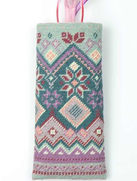 Fair Isle Glasses Case Tapestry Needlepoint Kit is a phone/glasses case tapestry kit, on full colour printed 14 holes per inch canvas with finest quality pure wool Appleton wools.