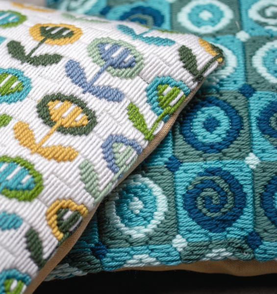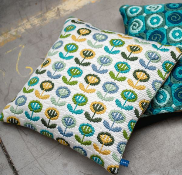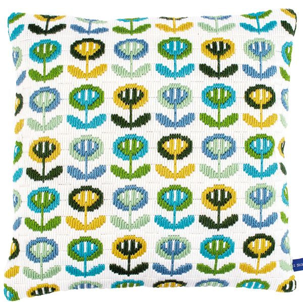 Vervaco Flowers Long Stitch Kit is a colourful geometric floral cushion front long stitch kit using chunky Acrylic Thread.