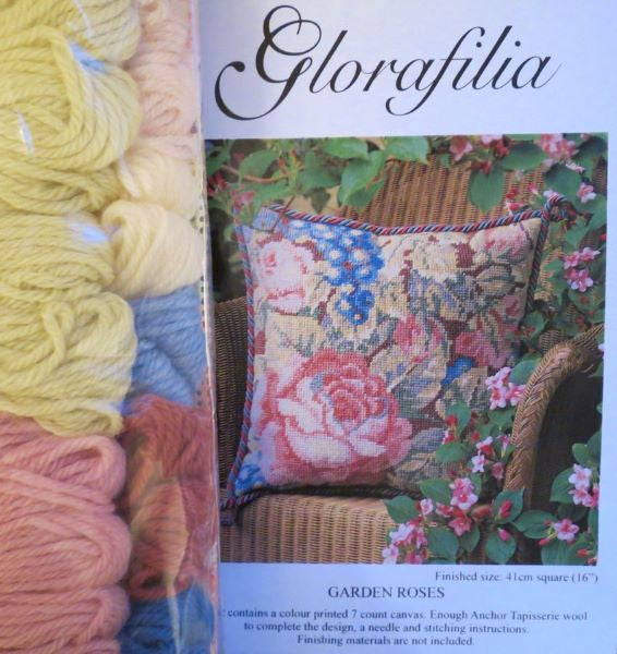 A unique Glorafilia Tapestry Kit stitched in pure new Anchor Tapestry Wools, on 7 hole canvas in simple tent stitch using two strands of wool for excellent coverage.