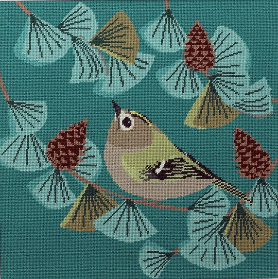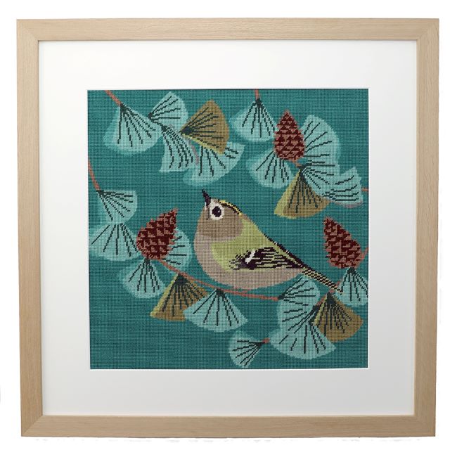 Cleopatra's Needle Goldcrest Tapestry Kit, a wonderful modern naïve art style British bird design, is full colour printed on 12 holes per inch canvas, stitched in tent stitch using finest quality Appleton Tapestry wools.
