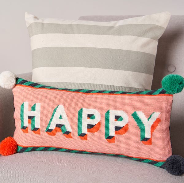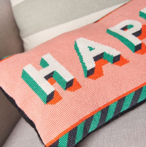 Anchor Happy Tapestry Needlepoint Kit is a unique modern tapestry kit with bright contemporary graphic letters with sentiment that will brighten your day, suitable for beginners and experienced stitchers.