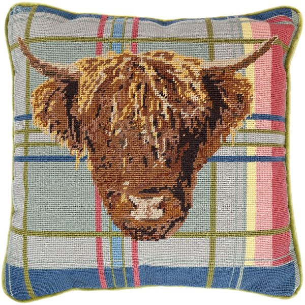 Highland Cow Tapestry Needlepoint Kit is a beautiful unique tapestry kit, with a wonderful highland cow on an elegant tartan background.