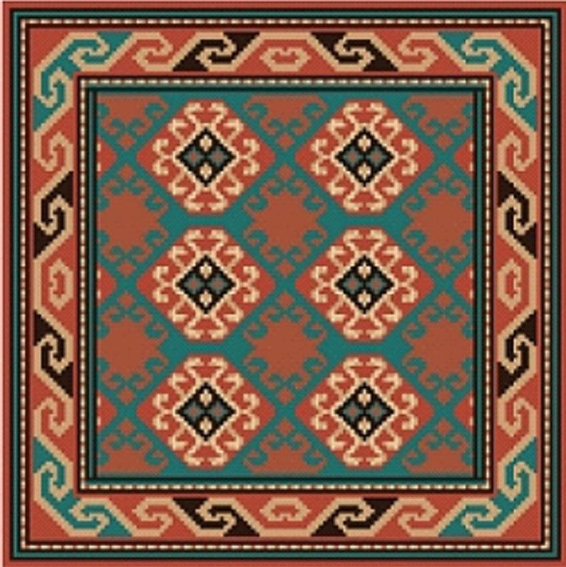 Designer's Needle Mafrash Tapestry Needlepoint Kit is a unique kelim tapestry kit design inspired by beautiful period Persian rugs, worked in tent stitch on 10 hole full colour printed premium tapestry canvas. A delight to stitch in warm rich authentic spicy shades of burnt sienna orange and emerald green with natural brown and beige accents.