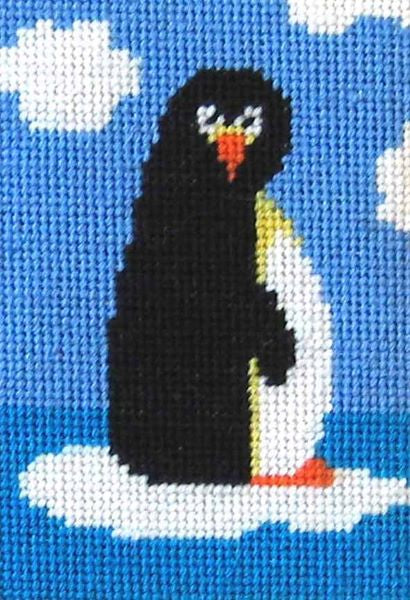 Peggy Penguin Tapestry Starter Kit is suitable for children and beginners, a lovely wild bird in bright colours and easy defined areas of stitching.