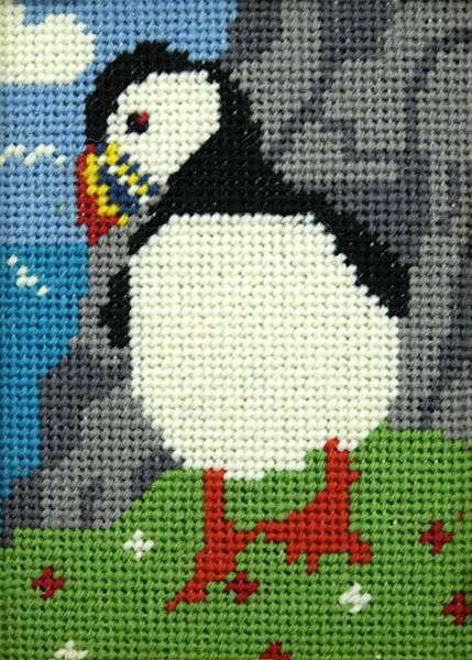 Cleopatra's Needle Petra Puffin children's tapestry kit is stitched on full colour printed 10 holes per inch canvas, so is easy to work. Suitable finished as a small tapestry picture, each kit includes Appletons Tapestry wool to stitch in traditional tent stitch or half cross stitch, so perfect for stitchers of all abilities.