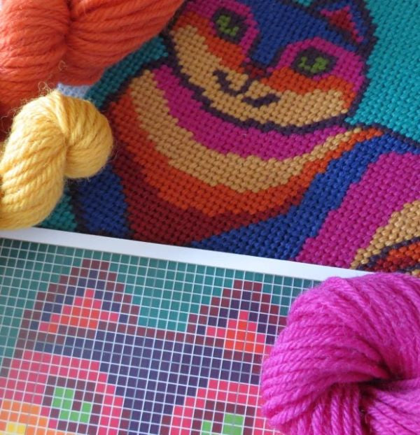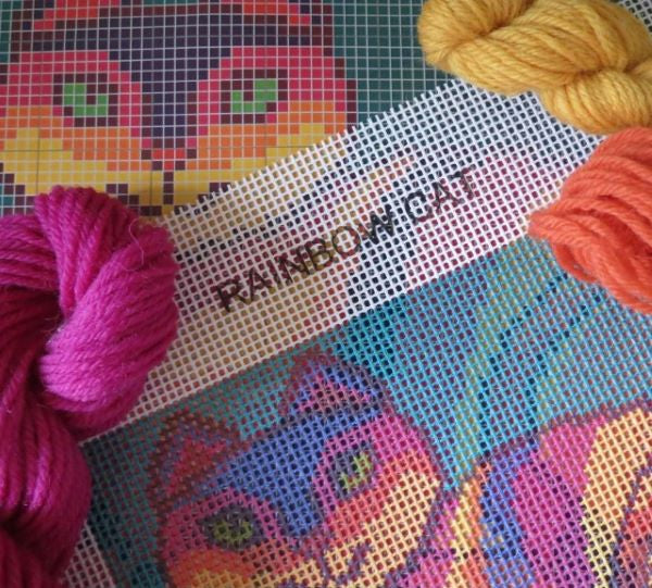 Rainbow Cat Tapestry Kit is suitable for new stitchers. A colourful cat tapestry kit on printed canvas, this beginners kit uses premium tapestry wool; a great way to learn to stitch.