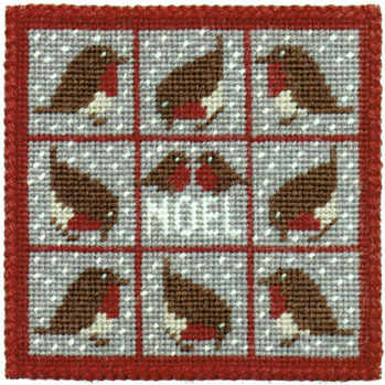 Red Robins Tapestry Needlepoint Kit is a lovely Christmas / winter bird tapestry kit, with lots of busy little robins. Perfect for finishing as a pincushion.