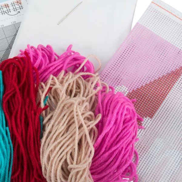 Kit includes 7hpi colour printed canvas, chunky ACRYLIC yarn, needle, cotton cushion back, and full instructions. Kit front with full colour image for easy reference. Quality Assured - Guaranteed Genuine Art Licensed Kit