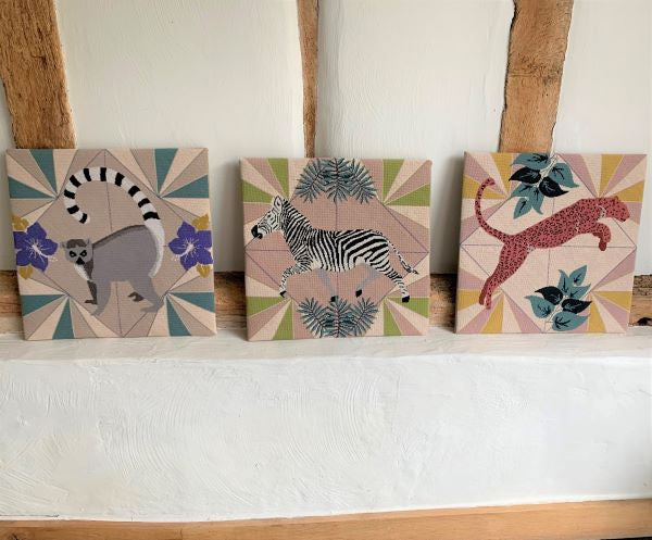 Appletons Zebra Tapestry Kit, Needlepoint Kit is a contemporary wildlife tapestry kit design from the stunning Wild Things tapestry collection, stitched in rich Appleton Wool colour tones. Designed by Thread and Mercury.
