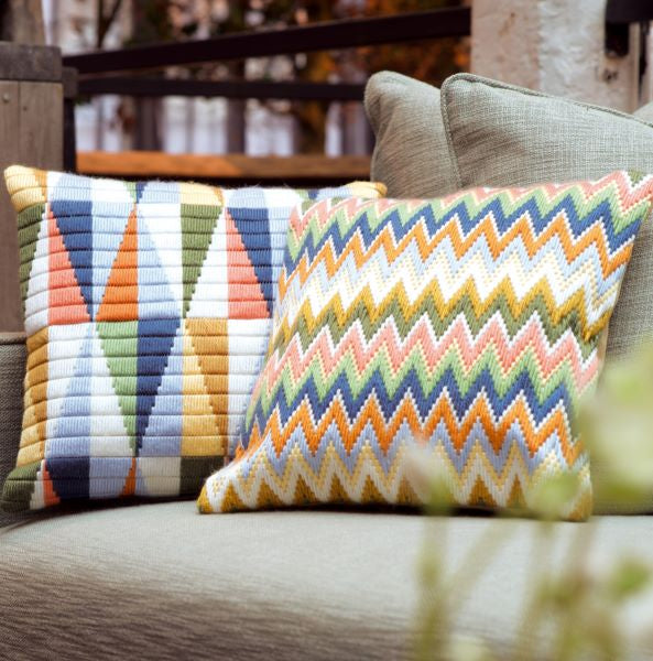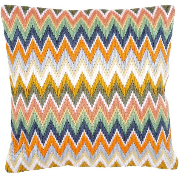 Vervaco Zig Zag Long Stitch Kit is a vibrant geometric bargello style cushion front long stitch kit using chunky Acrylic Thread.
